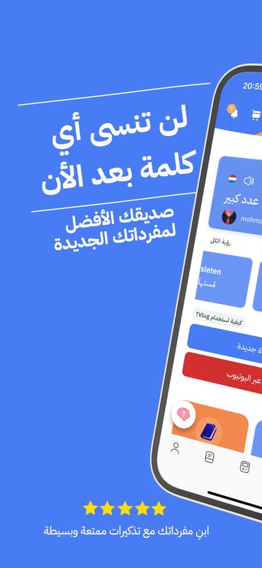 "أصبح التطبيق دفتر ملاحظاتي المحمول، جميع مفرداتي فيه. المدهش أنه يذكّرني كل 15 دقيقة بكلمة جديدة من قائمتي. استمتعت بلعب الألعاب واستخدام المجلدات لتنظيم كلماتي. أفضل تطبيق مفردات."