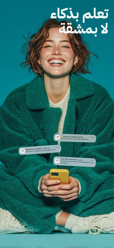 "لقد غيّر فلوخ تماماً الطريقة التي أتعلم بها كلمات جديدة. التذكيرات اليومية والمجلدات المنظمة تبقيني على المسار الصحيح، وأحب كيف يمكنني إضافة الكلمات بسهولة. إنه كمدرب لغة شخصي في جيبي!"